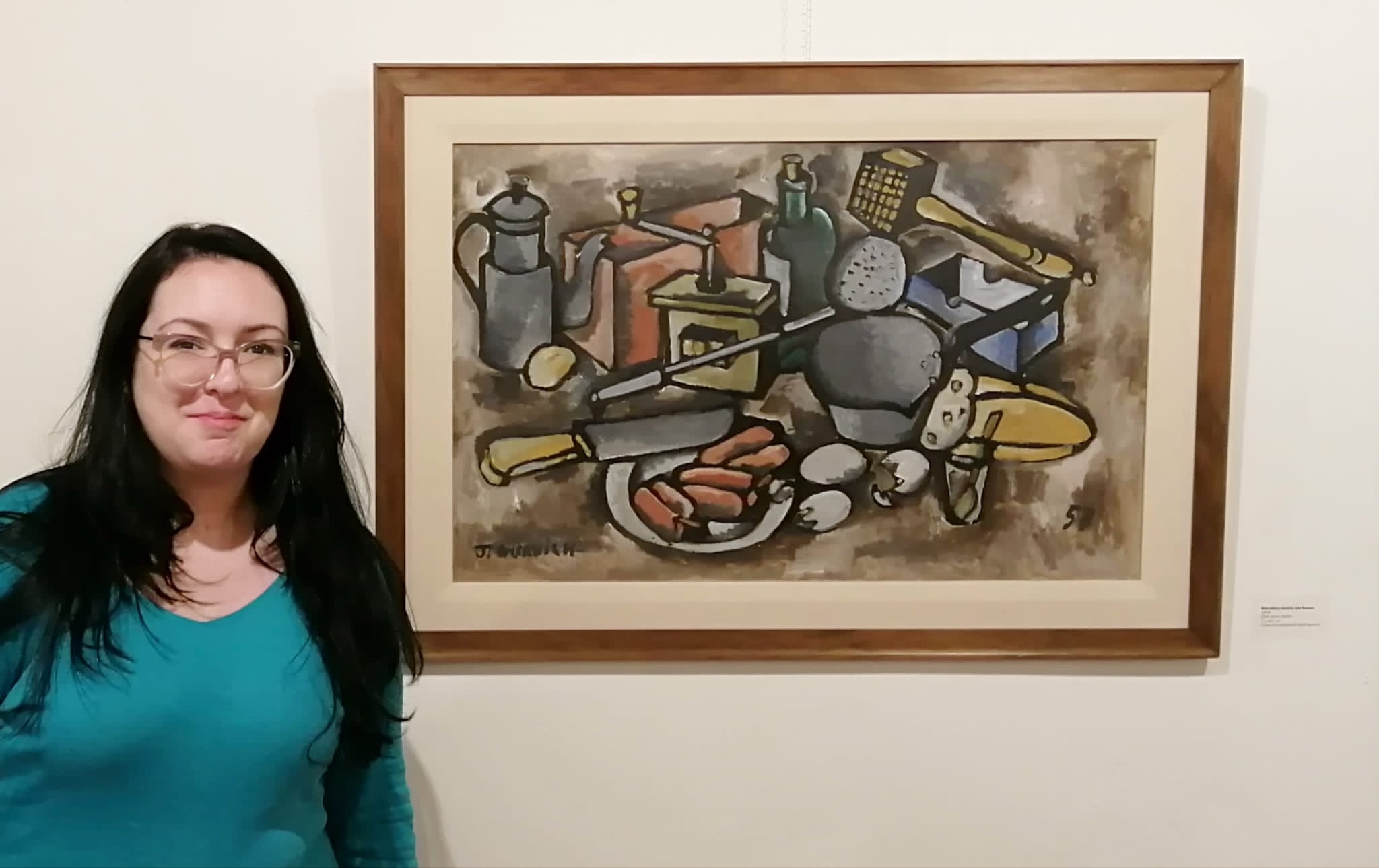Eugenia Méndez, junto a Naturaleza muerta con huevos, de José Gurvich (Museo) Rossana San Martín Cruxên - mayo 3, 2022 - No Comments