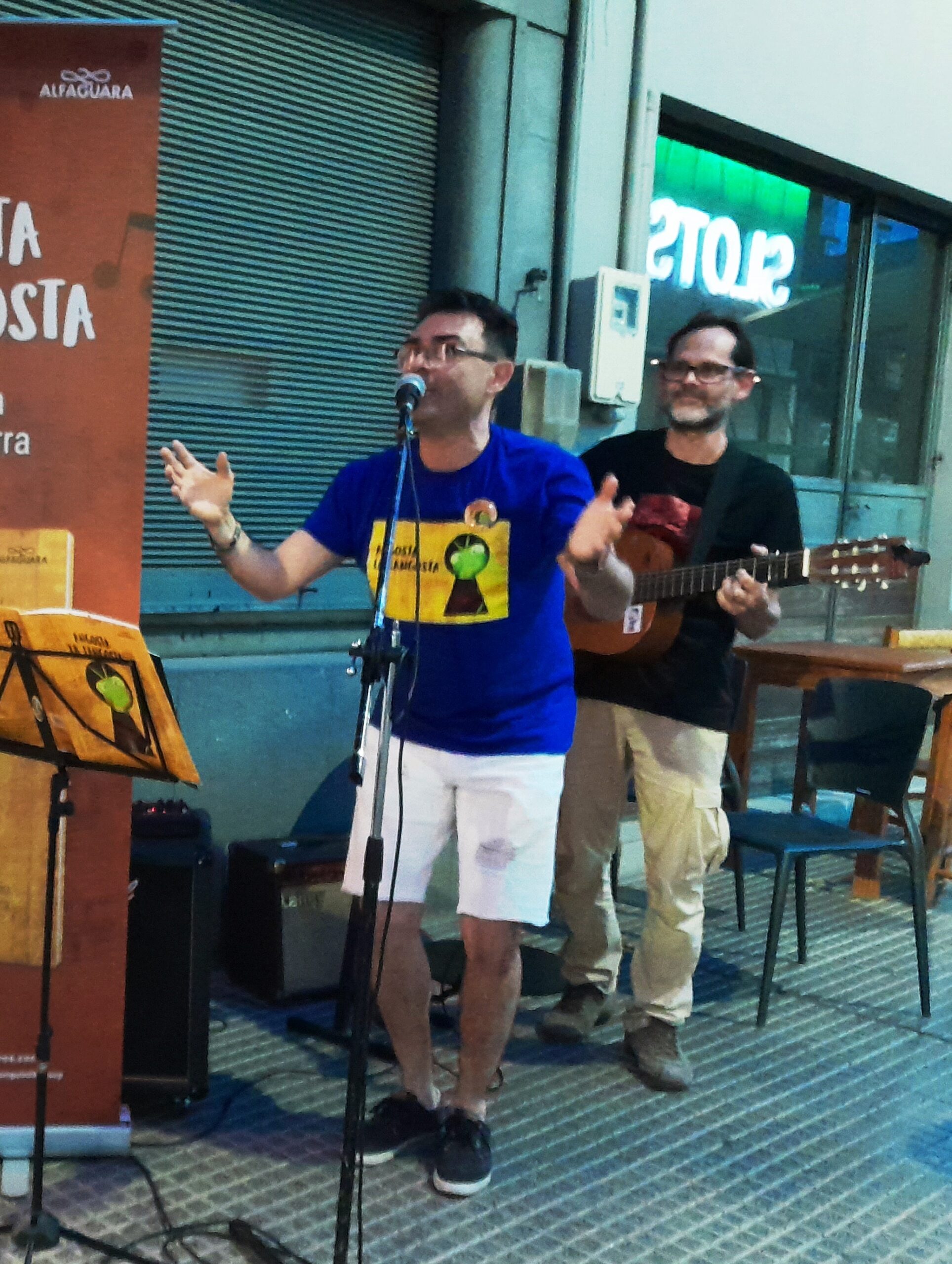 Fito Lacava y Fernando Tomás, frente a la librería Puro cuento... Rossana San Martín Cruxên - febrero 21, 2023 - No Comments